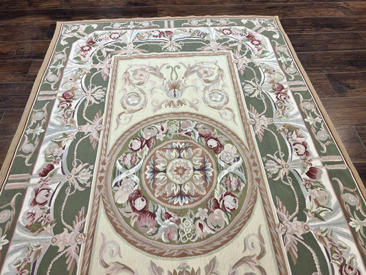 Aubusson Rug 5x8, Wool Handmade Vintage Carpet, Angel Motifs, Flatweave Rug 5 x 8, Medium Sized, European Design