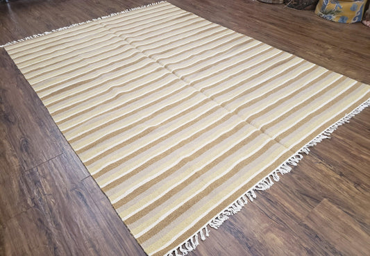 New Indian Striped Blanket, Multicolor Earthern Tones Kilim Rug, Wool Handmade South American Style Blanket, Queen Sized Bedspread 5x8 - 6x8