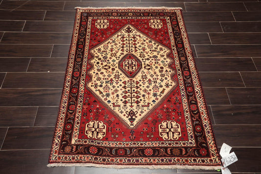 Ivory Red 3'4" x 4'9" Hand Knotted Wool Abadeh Traditional Oriental Area Rug