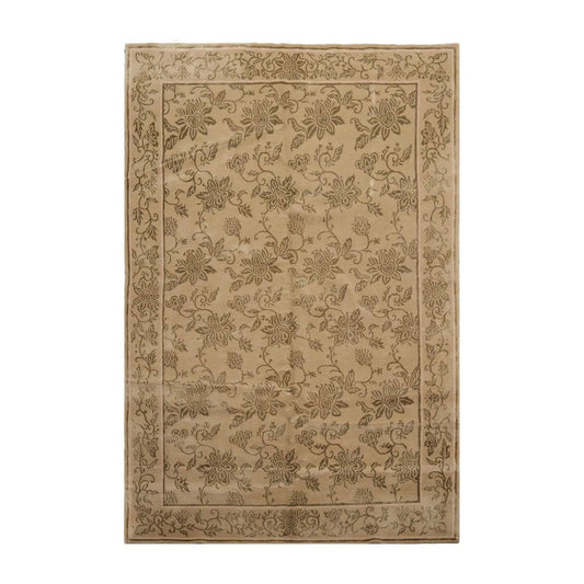 Tibetan Hand Knotted Wool & Silk Transitional Oriental Area Rug Tan 6' x 9'
