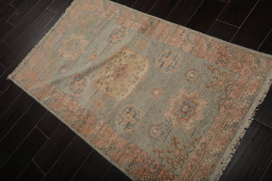 Muted Afghan Oushak Vegetable Dyes 3’ x 5’ Hand Knotted Wool Area Rug Sea Foam