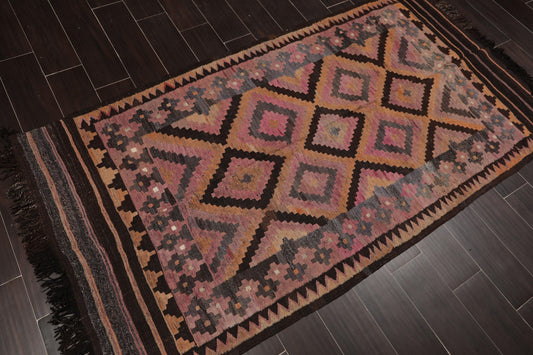 3'8" x 7' Hand Woven Vintage Afghani Kilim Traditional Oriental Area Rug Rust