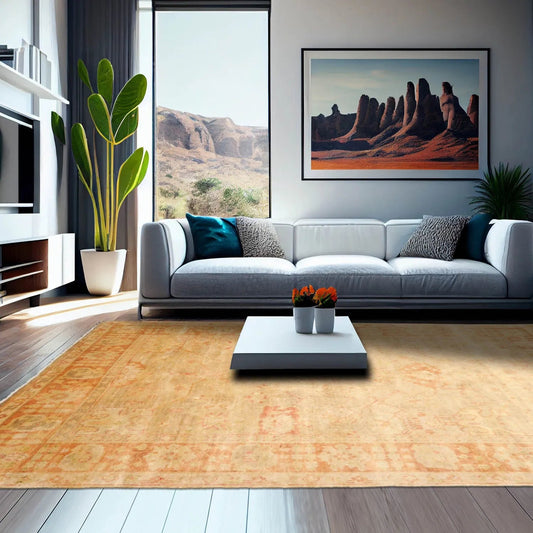 9x12 LoomBloom Peach Hand Knotted Traditional Turkish Oushak Wool Oriental Rug