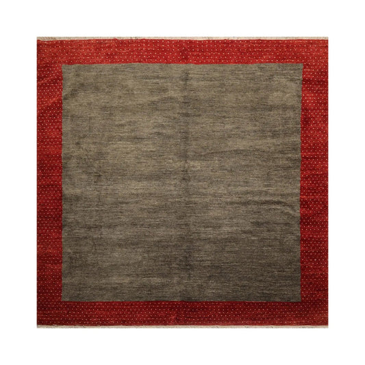 Square Mossy Gray,Rusty Red Hand Knotted Gabbeh 100% Wool Gabbeh Traditional Oriental Area Rug