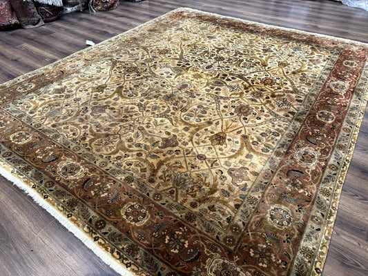 Indo Persian Mahal Rug 8x10, Black and Gold, Wool Hand Knotted Oriental Carpet