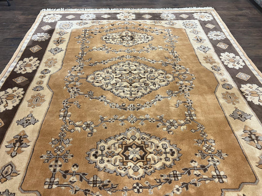 Indian Oushak Rug 8x10, Wool Hand Knotted Vintage Carpet