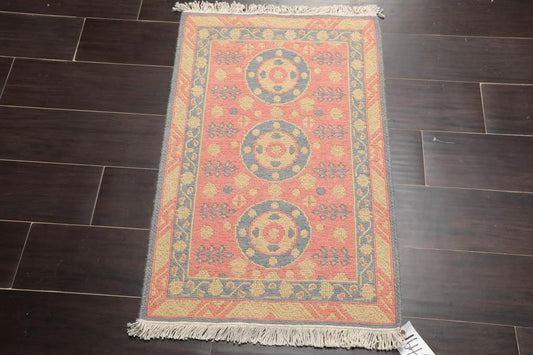 1'9''x4' Dhurry Kilim Reversible Hand-Woven Wool Contemporary Oriental Area Rug