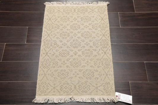 1'10''x2'7'' Hand Knotted 100% Wool Reversible Oriental Area Rug Beige