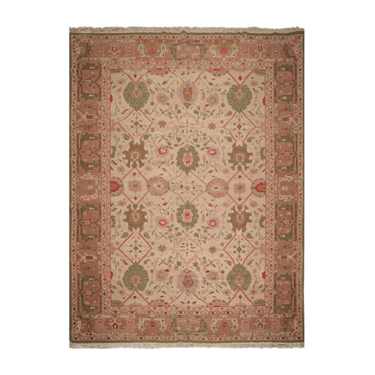10' 2''x12' 11'' Blush, Aqua Color Hand Knotted LoomBloom Muted Turkish Oushak 100% Wool Transitional Oriental Area Rug