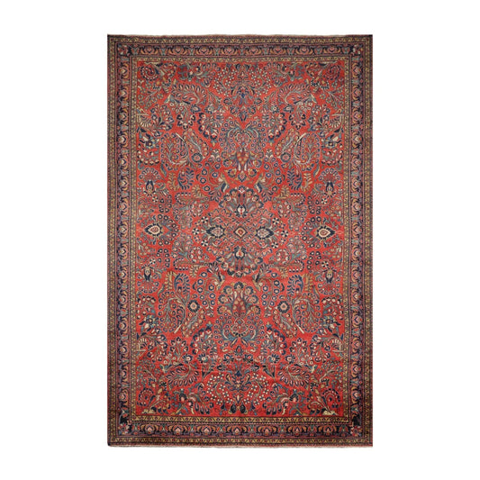 10'3"x 13'9" Vintage Mahal Hand Knotted Wool Traditional Oriental Area Rug Coral