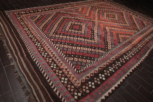10'5" x 16' Palace Antique Hand-Woven Wool Turkish Afghan Kilim Area Rug Rust