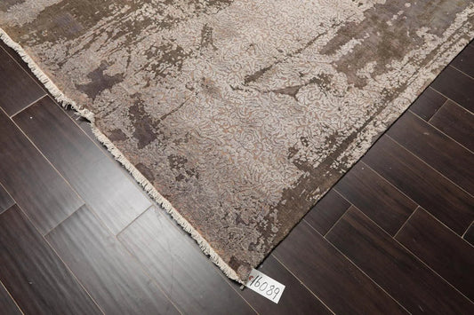 Tibetan 8' x 10' Hand Knotted Wool & Silk Modern Sherpa Area rug Brown, Beige