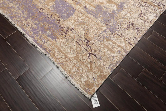 Tibetan 8' x 10' Hand Knotted Wool & Silk Contemporary Sherpa Area Rug Lavender