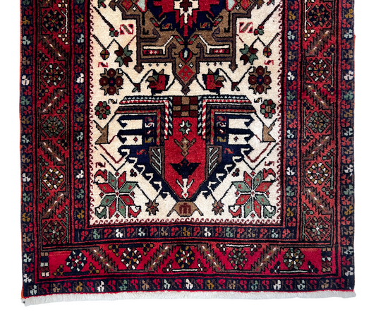 Vintage Persian Karajeh (3'01"x14'05") ivory/dk.red