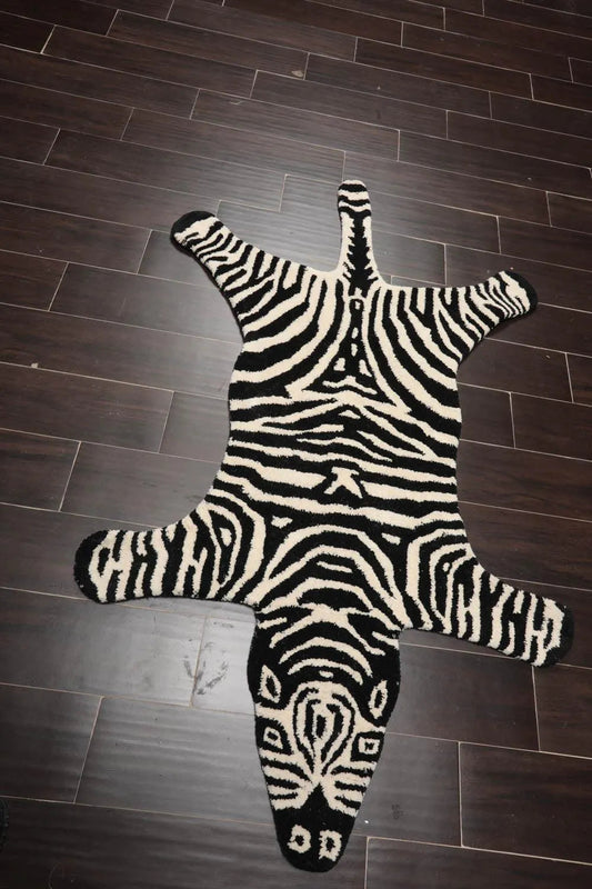 Zebra Handmade 100% Wool Novelty/Animal Oriental Area Rug Black 3'x5'