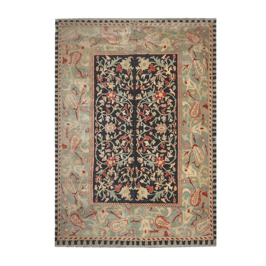 10x14 Black, Pale Aqua Hand Knotted Turkish Oushak 100% Wool Traditional Oriental Area Rug