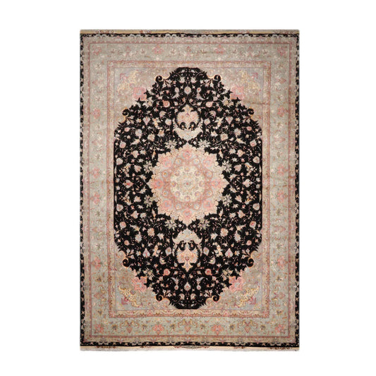 11' 6''x16' 10'' Palace Hand Knotted Wool and Silk Tabriz Traditional 400 KPSI Oriental Area Rug Black, Aqua Color