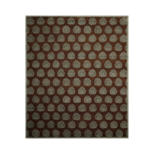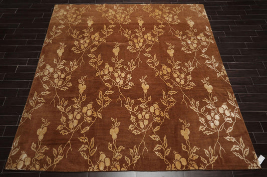 10’6" x 10’6" Lapchi Hand Knotted Wool & Silk Square Tibetan Oriental Area Rug Brown