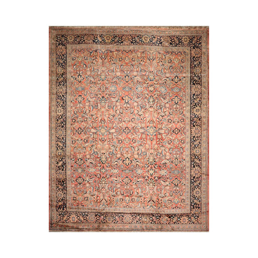 10x14 Salmon, Black Hand Knotted 100% Wool Mahal Traditional Oriental Area Rug
