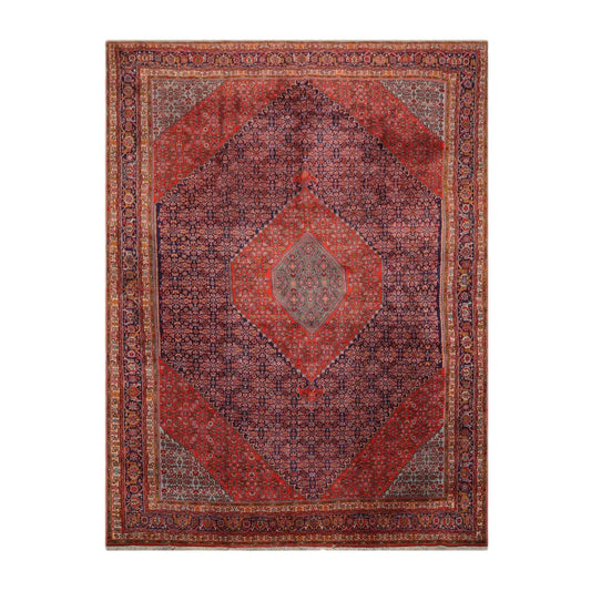 10x14 Hand Knotted 100% Wool Vintage Bidjar Traditional Oriental Area Rug Navy, Orange Color