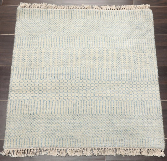 2'x2' Ivory Hand KnottedTibetan Modern Wool and Bamboo Silk Oriental Area Rug