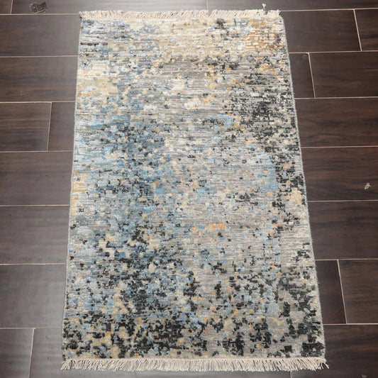 2'x3' Gray Hand Knotted Tibetan Modern Abstract Wool and Bamboo Silk Oriental Area Rug