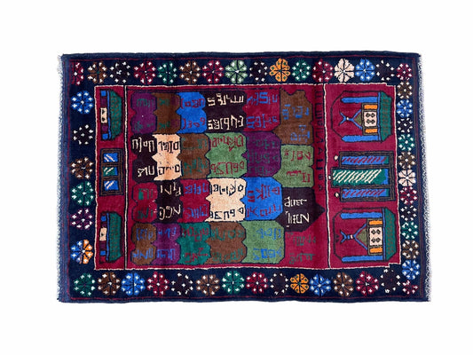 3 X 4.3 Vintage Handmade Tribal Wool Rug Balouch Rug Afghan Rug Red Blue Nice