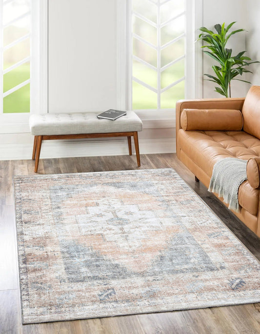 Modern Area Rug Boho Design with colorful Pattern in Cream