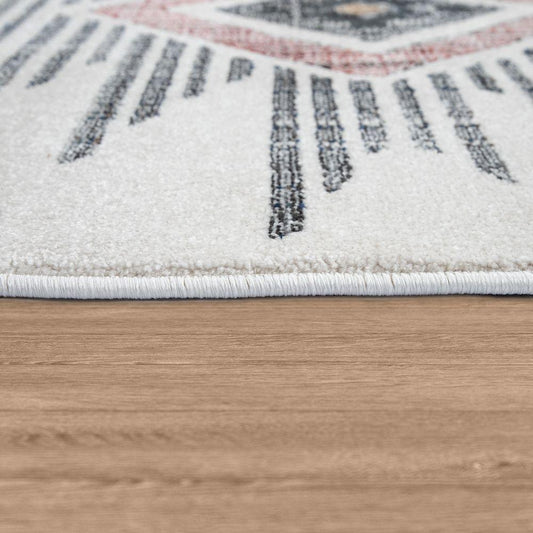 Area Rug Cream Low-Pile Boho Style Colorful Diamond Pattern