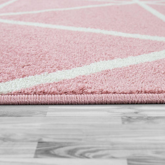 Modern Boho Rug with colorful Diamond Pattern in Cream