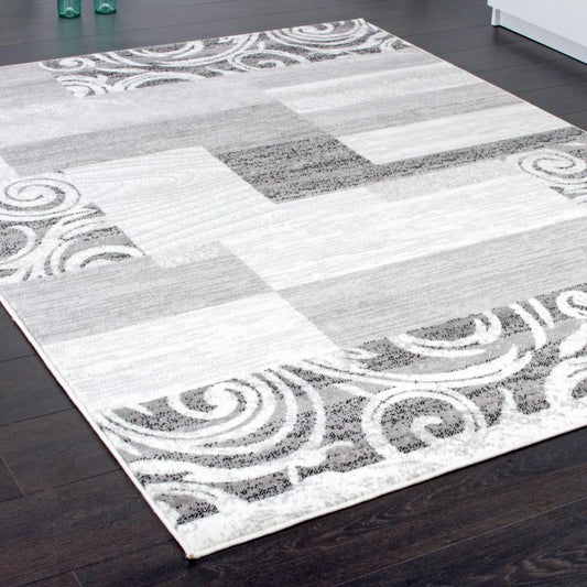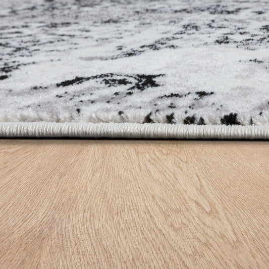 Living Room Rug Low-Pile in Grey White Cream
