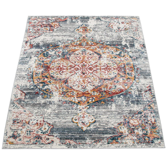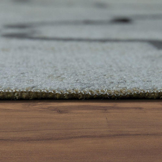 Designer Rug Short-Pile Living Room Vintage Look Modern In Grey Cream