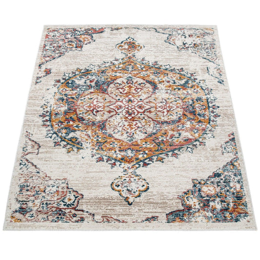 Modern Vintage Rug Oriental Look Abstract Beige Grey Orange
