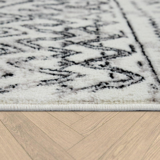 Living Room Rug with Scandi Pattern Low-Pile in Cream Grey