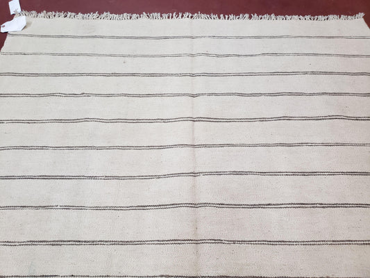New Turkish Kilim Rug, Striped Area Rug, Southwestern Style, Off-white/Ivory Color, 5x8 Kilim Carpet, Hand-Knotted, Flatweave, Wool