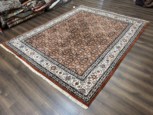 Indo Bidjar Rug 8x10, Indo Persian Bijar Carpet 8 x 10 ft, Herati Allover Floral, Red and Ivory, Wool Hand Knotted Vintage Oriental Rug Nice