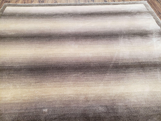 Vintage Safavieh Tibetan Indian Rug 6x9, Nepal Rug, Handmade, Striped Rug, Brown & Beige, 6x9 Oriental Carpet, Wool, Soft