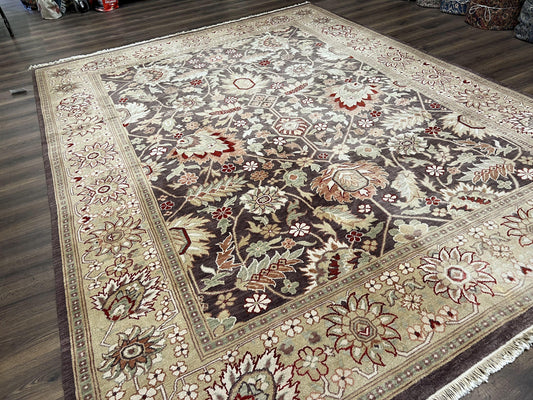 Vintage Indian Rug 9x12, Sultanabad Area Rug 9 x 12, Wool Hand Knotted Living Room Oriental Carpet, Eggplant and Khaki Color, Teawashed Rug