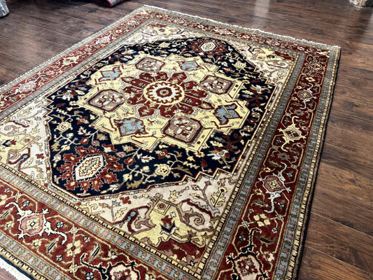 Indo Persian Heriz Rug 8x10, Geometric Medallion, Serapi Carpet, Wool Vintage Rug