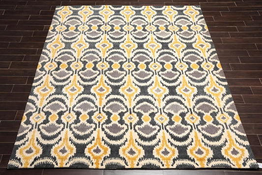 8' x 10' Handmade 100% Wool Bold Ikat Modern Oriental Area Rug Beige