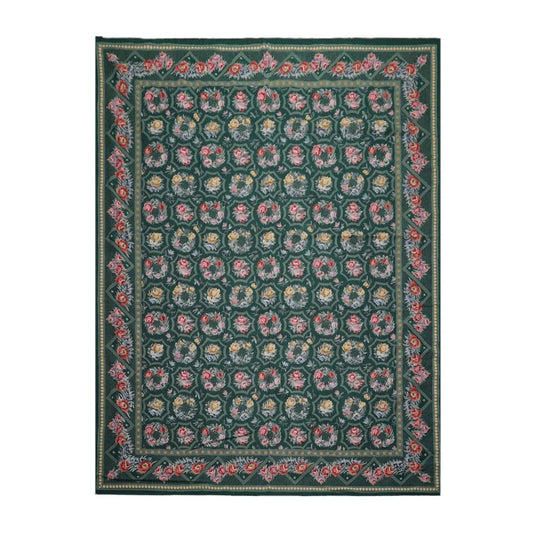 Hand Woven 100% Wool Floral French Aubusson Needlepoint Area Rug Green 9' x 12'