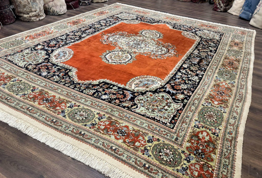 Persian Rug 11x13, Semi Open Field, Soft Wool Pile, Vintage Persian Carpet, Persian Tabriz Tabatabai