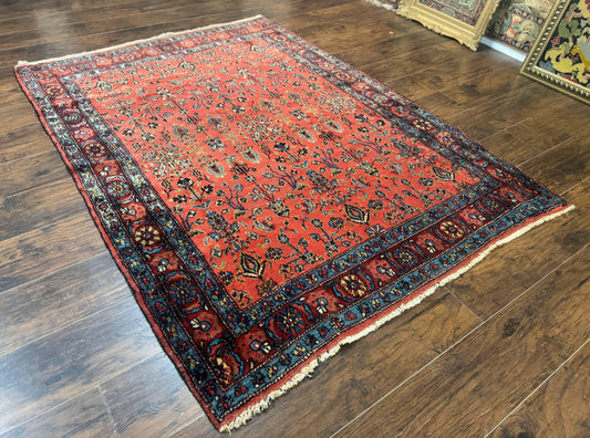 Persian Lilihan Rug 5x6, Red, Floral, Antique Persian Carpet