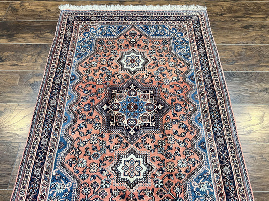 Persian Shiraz Rug 3x5, Geometric Tribal Rug, Wool Hand Knotted Vintage Carpet, Light Red & Blue, Signed by Masterweaver