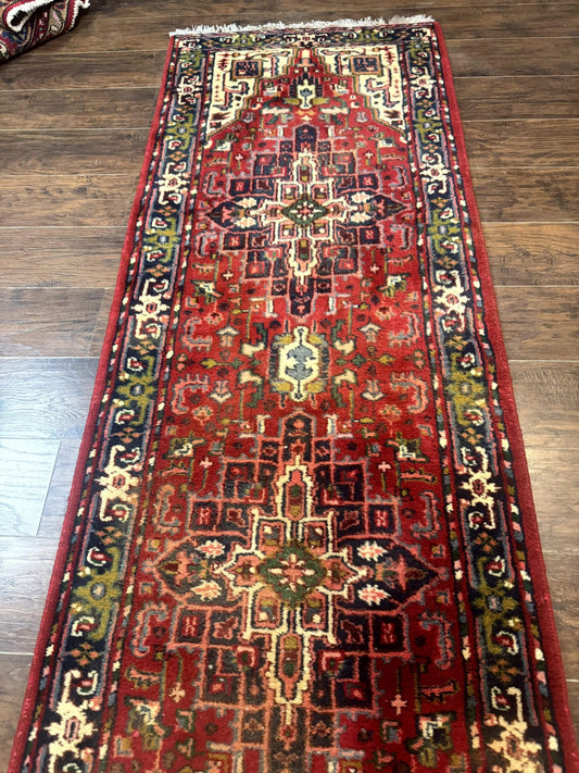 Indo Persian Heriz Runner Rug 3 x 17, Geometric Long Runner Carpet for Hallway, Medallions, Wool Runner Rug 3x17