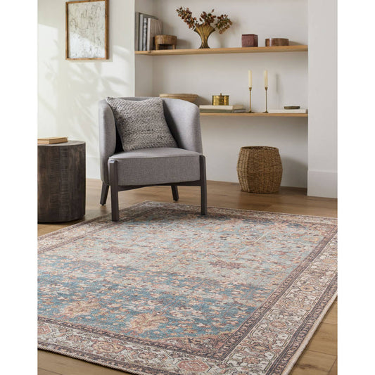 Kyeisha Traditional Pale Blue Washable Area Rug