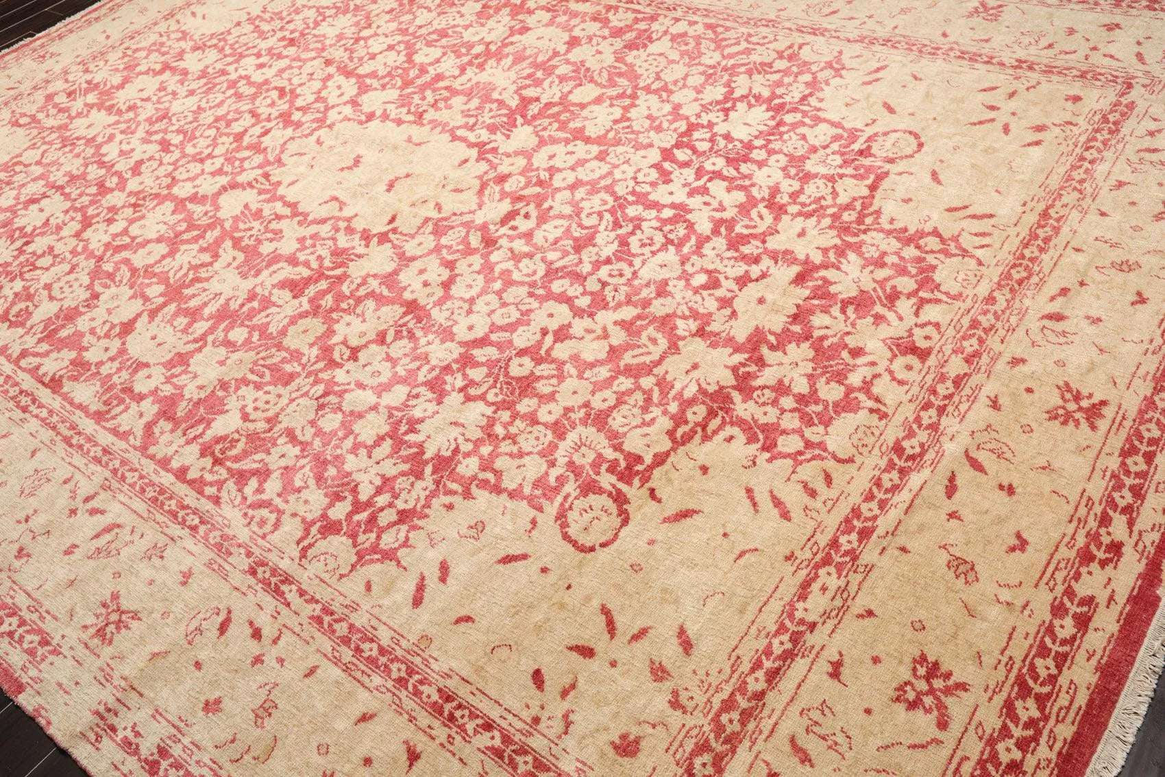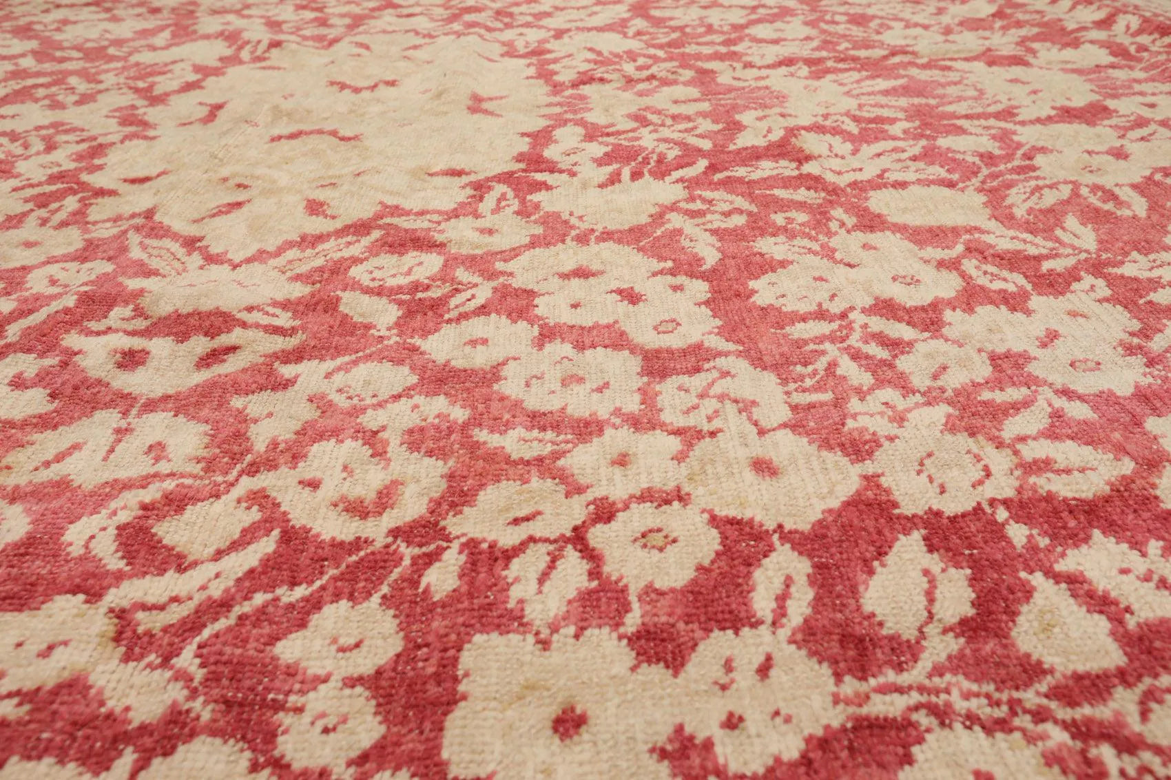 This 10’x14’ hand knotted rug fuses the magic of timeless traditional designs with the spirit of modern times. Made from lanolin rich wool, the rug uses Turkish knots for enduring durability and features a hand clipped extra thin pile. A special wash system has been used to give the rug a unique antique finish patina and a high velvety sheen. Essentially a reproduction, the rug has erased pattern and contemporary color palette that imparts it an edgy modern and contemporary look and is versatile to suit different styles of home décor.