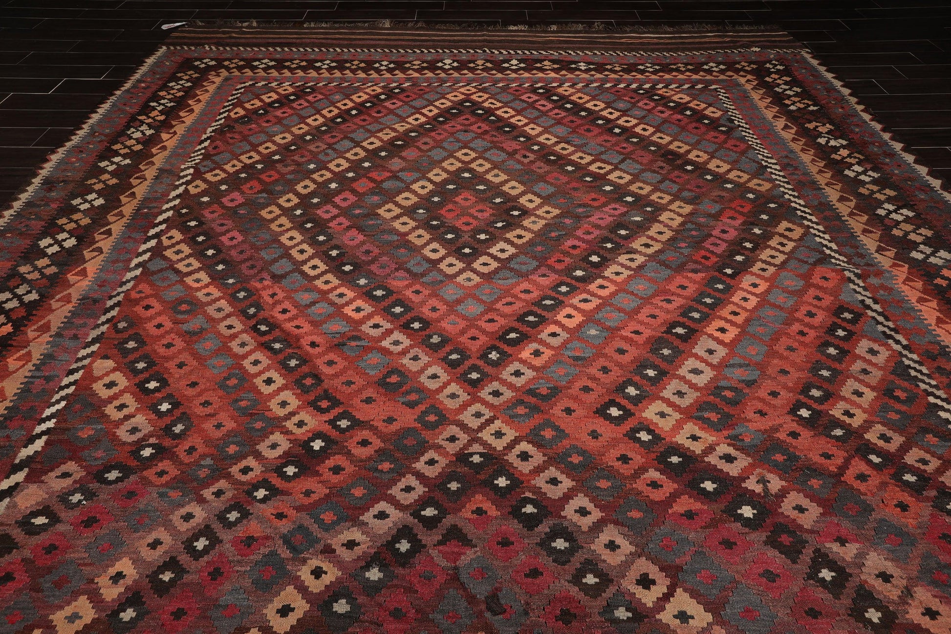 10'5" x 16' Palace Antique Hand-Woven Wool Turkish Afghan Kilim Area Rug Rust