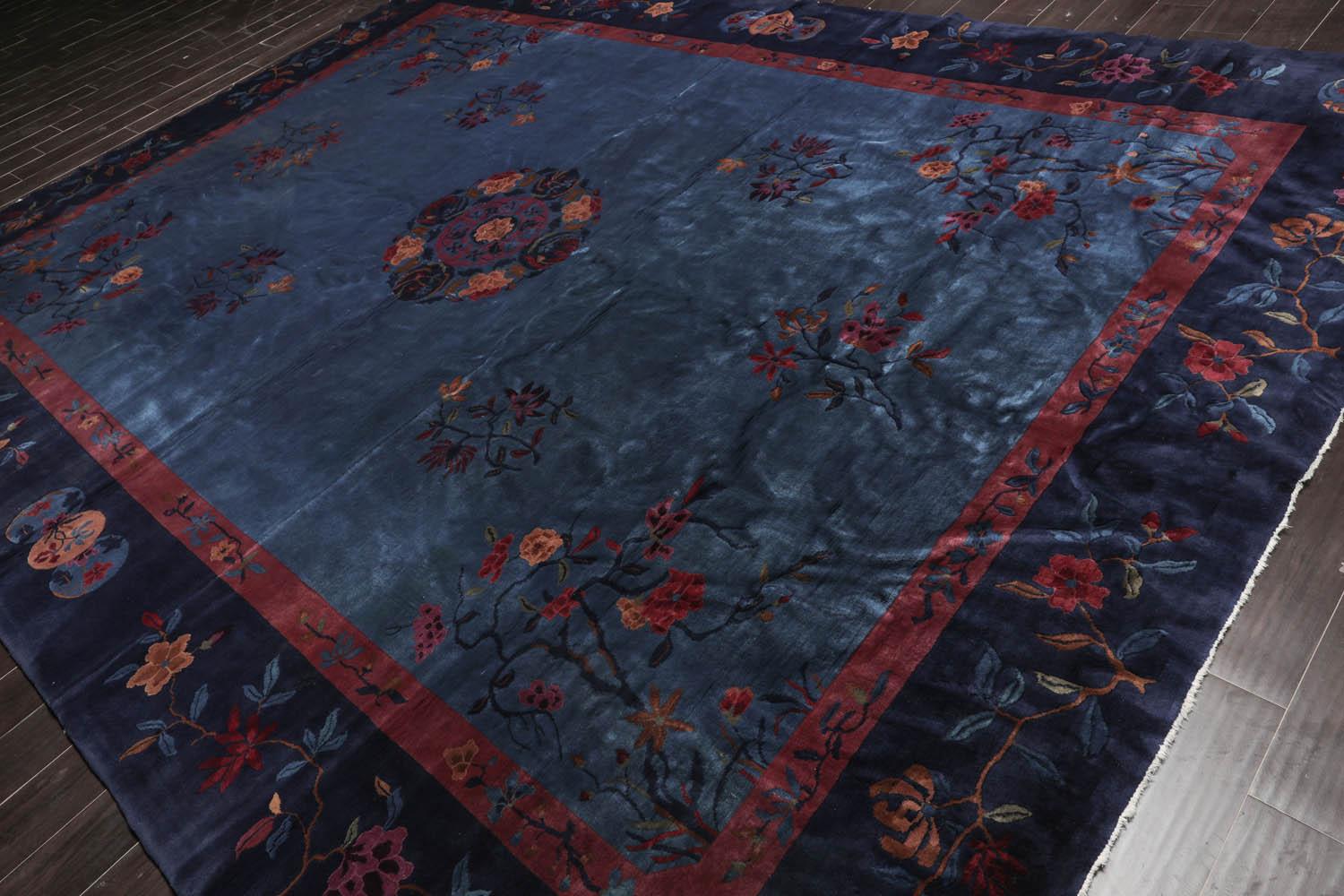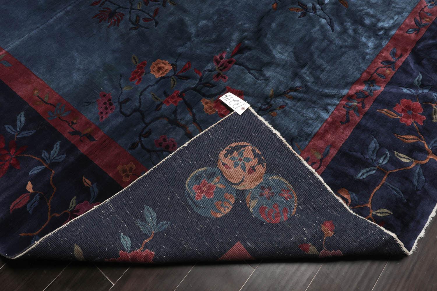 10'x13'6" Antique Art Deco Plush Pile Hand Knotted Wool Oriental Area Rug Navy