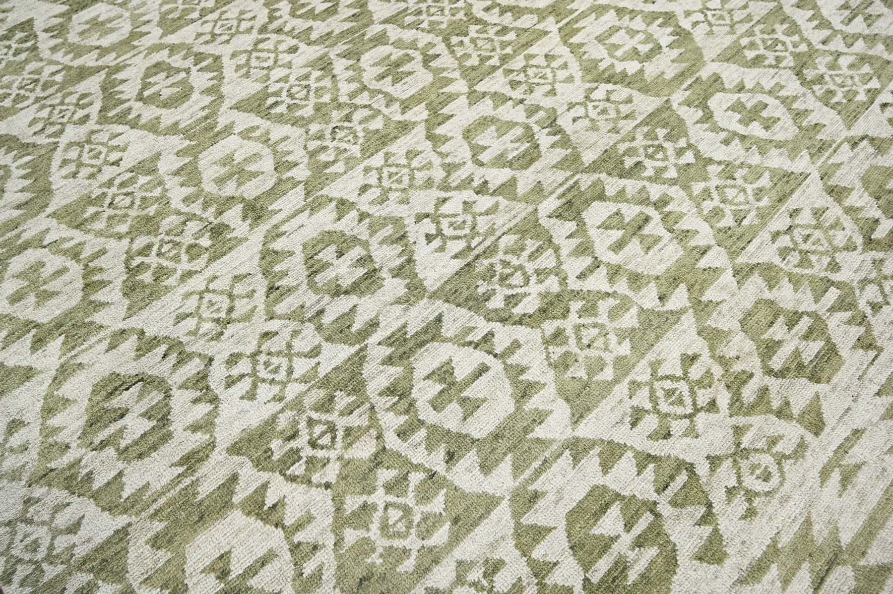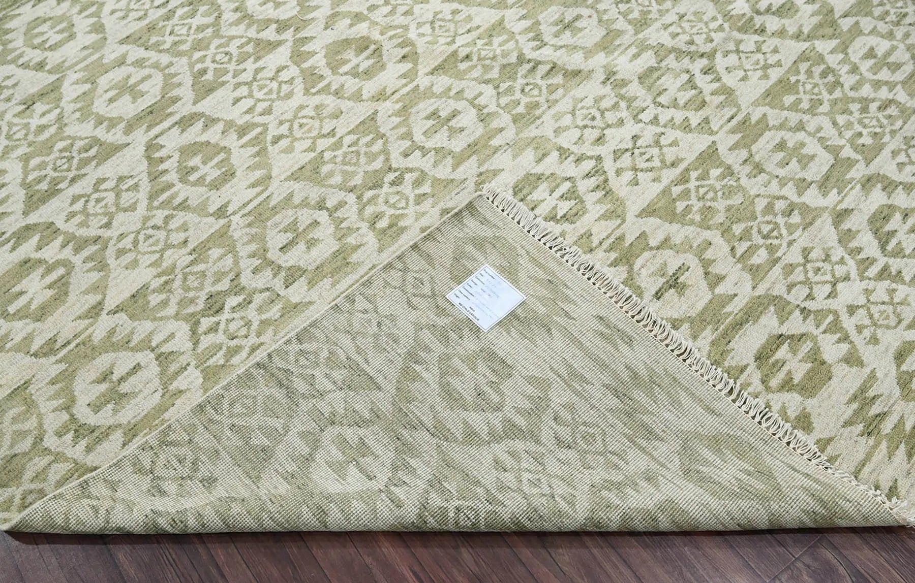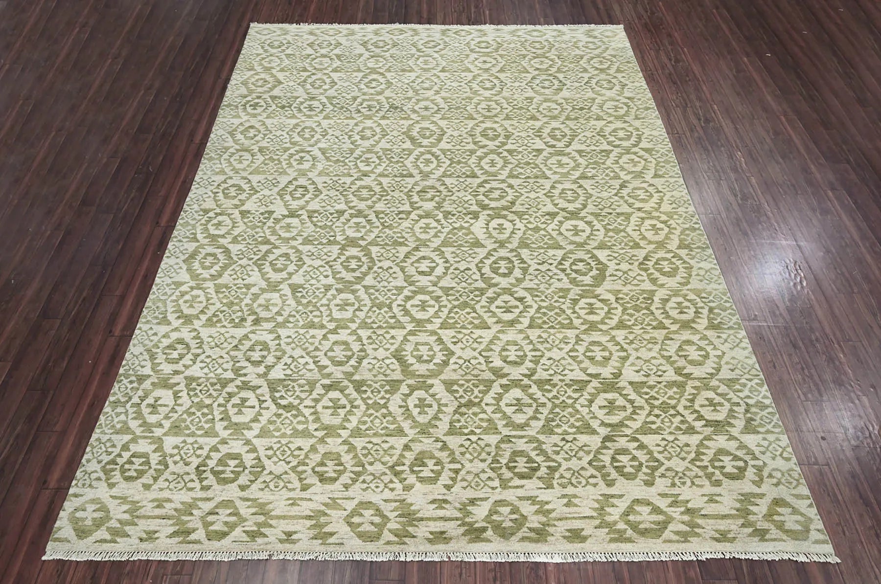 10x14 Beige, Green Hand Knotted Oushak 100% Wool Southwestern Oriental Area Rug